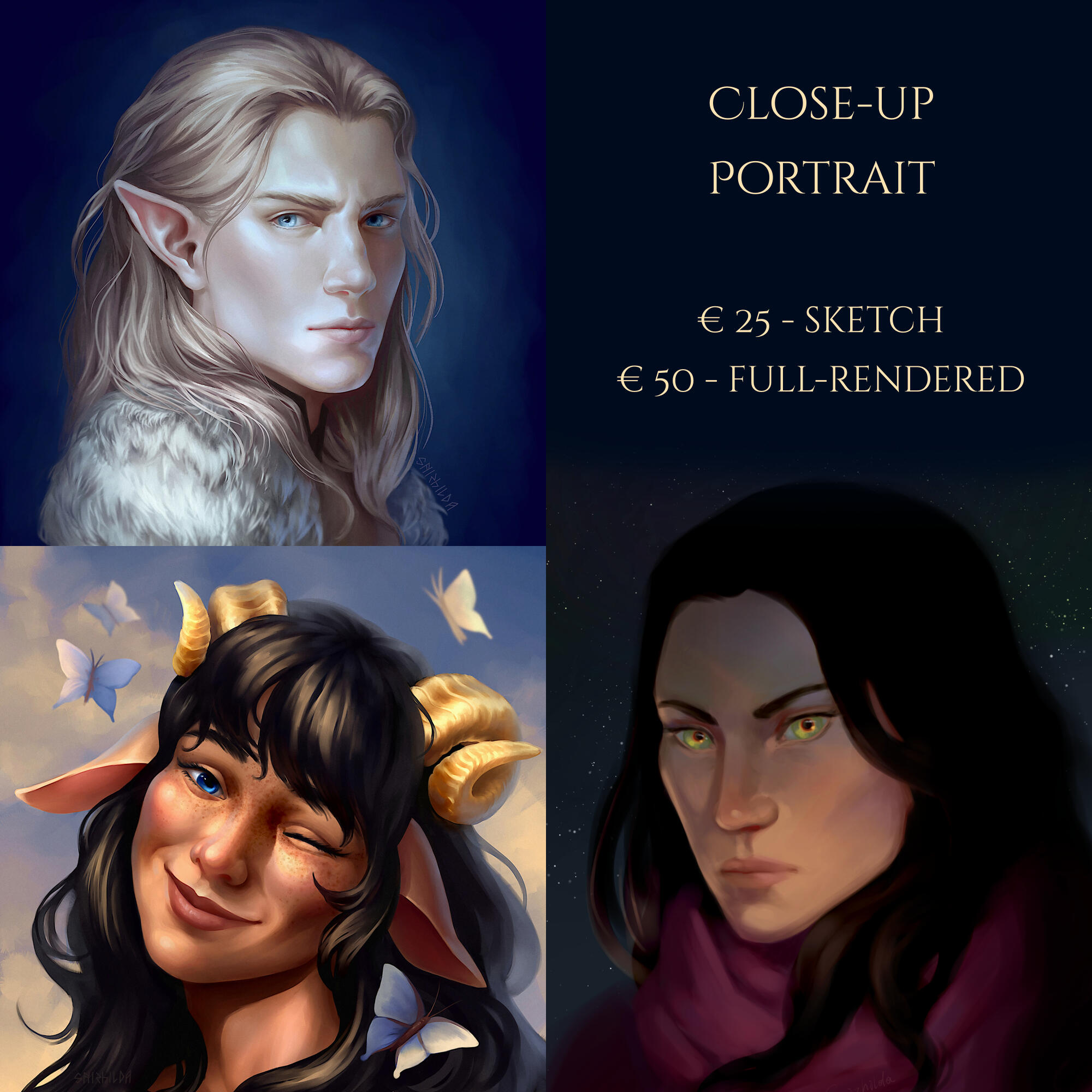 I’m a digital artist creating semi-realistic portraits and illustrations for original characters, as well as different fantasy worlds.