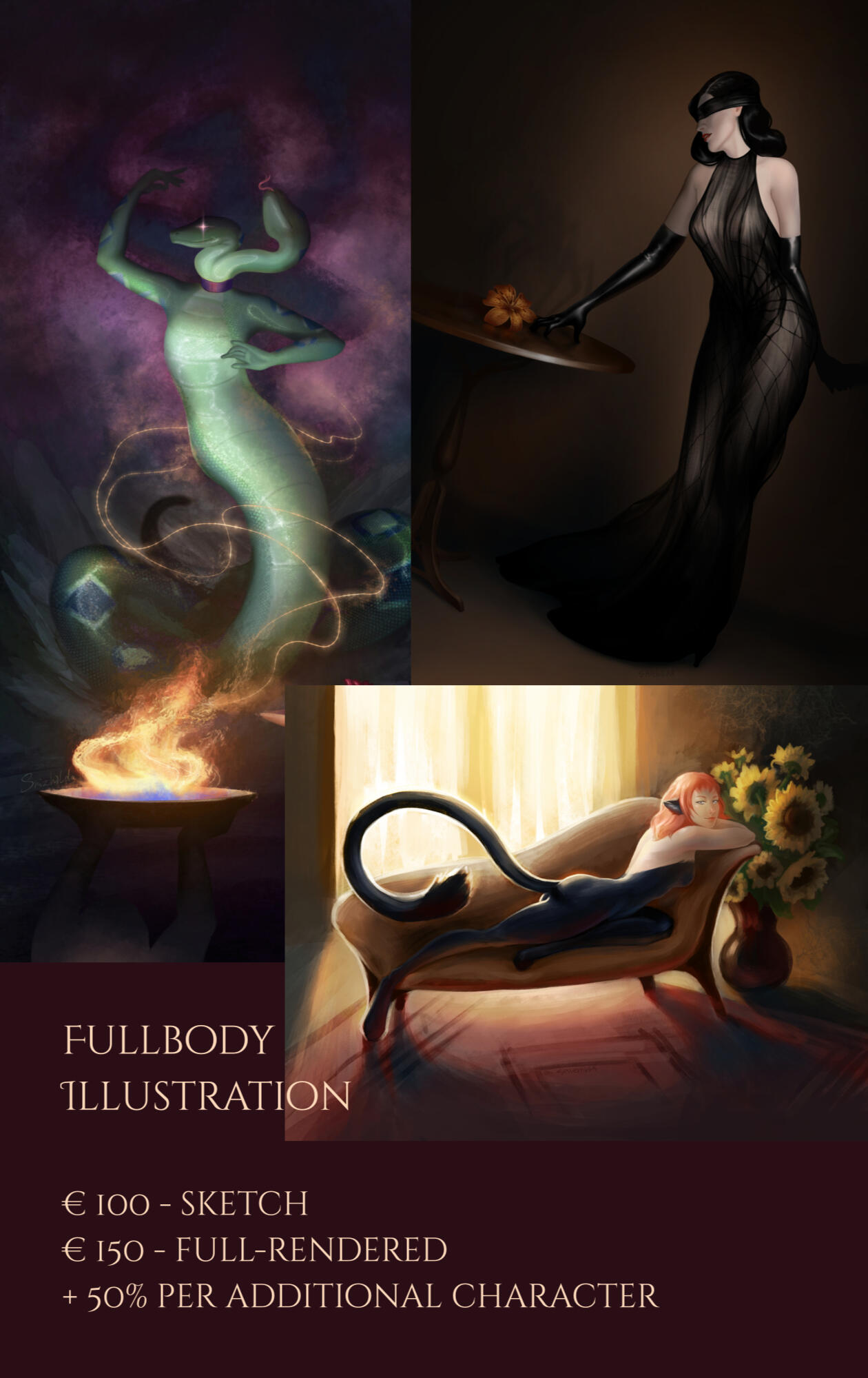 or 50% upfront / 50% after finished work.I accept payment plans for commissions over € 75.Please include only your nickname and/or character name in the payment notes. Don't mention NSFW! PayPal doesn't seem to like that.If, for any reason, at some stage of the work you decide to cancel the commission, but have already paid the full amount, I will refund you the money according to the stage at which we stopped.No refunds once the order is completed.